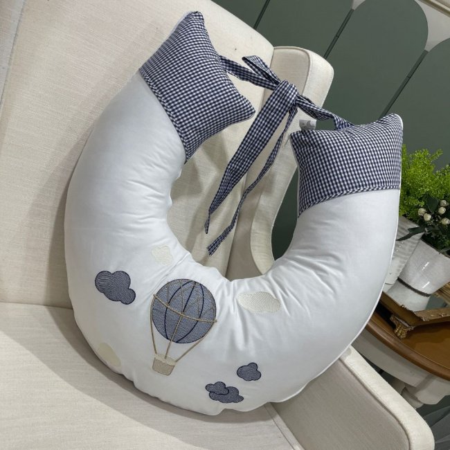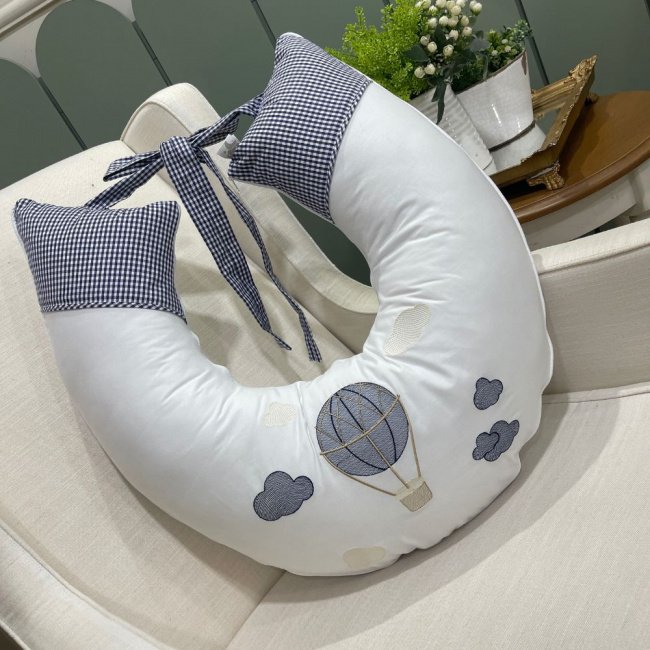 Envolva seu pequeno em conforto com nossa Almofada de Amamentação Balão Marinho, criando momentos de ternura e conexão entre vocês.