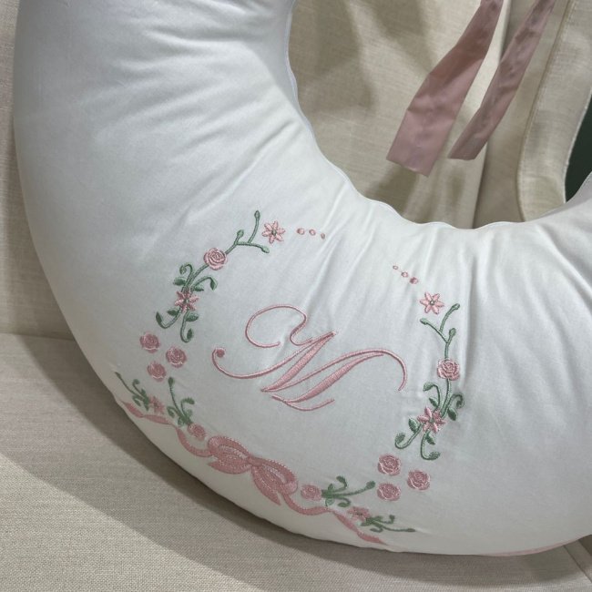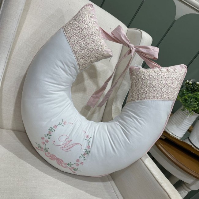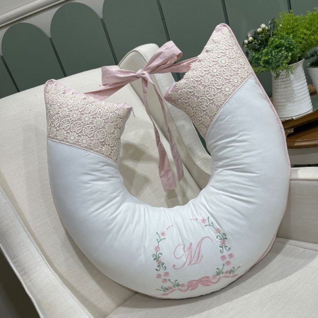 Produto composto por: 01 Almofada De Amamentar com Inicial – 60 cm x 50 cm; Composição: Tecido: 100% Algodão 200 Fios Enchimento: 100% Poliéster: Tecidos: 100% Algodão 200 Fios. Gênero: Menina. Cor: Rosê Off White. Lançamento: Menina. Tema: Clássico.