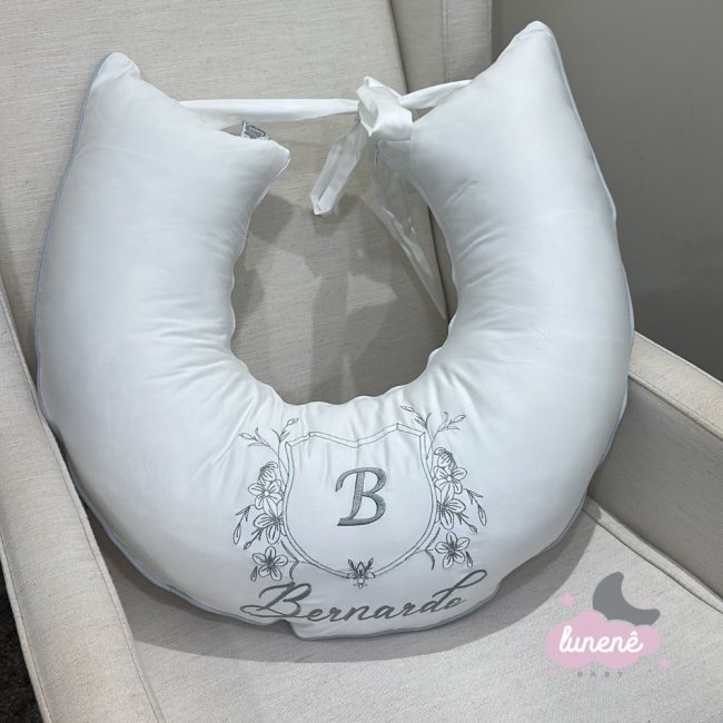 Produto composto por: 01 Almofada De Amamentar Personalizada – 60 cm x 50 cm; Composição: Tecido: 100% Algodão 200 Fios Enchimento: 100% Poliéster: Tecidos: 100% Algodão 200 Fios. Gênero: Menino. Cor: Branco Cinza. Lançamento: Menino. Tema: Clássico.