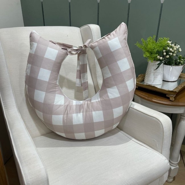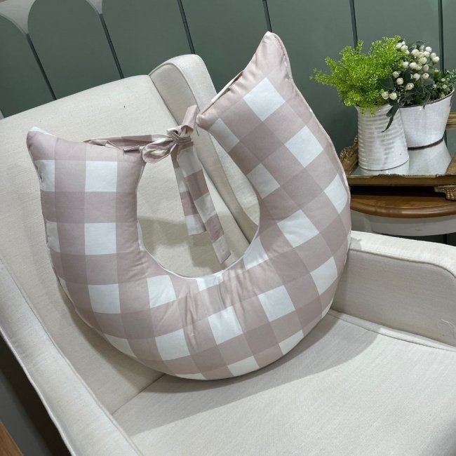 A Almofada de Amamentação Xadrez Terracota é o abraço que transforma momentos simples em memórias eternas entre mãe e bebê.