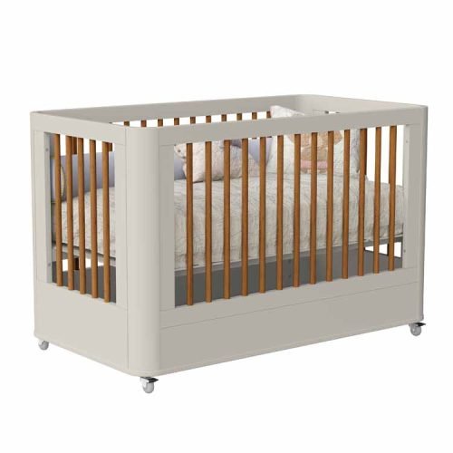 O Berço Boom Slim Wheels na cor areia fosco é ideal para acompanhar o crescimento do seu bebê com segurança e conforto. Fabricado em MDF, possui cantos arredondados e grades com palitos de madeira, garantindo um design acolhedor e funcional. Com três posições de regulagem do estrado e a opção de ser montado como mini berço, ele se adapta a cada fase do seu pequeno.