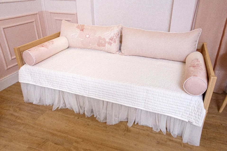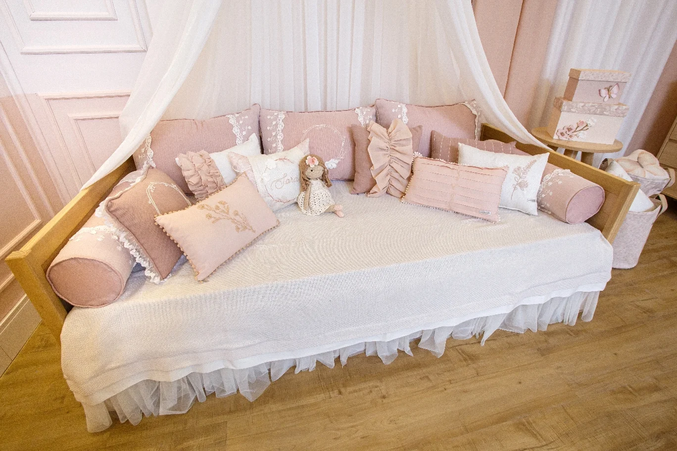 A Coleção Guirlandas disponibiliza produtos para enxoval e decoração do quarto do bebê. Inclui kits de berço, kits Montessorianos para cama ou mini cama, kits de cama, almofadas e almofadas de amamentação, cabanas, sacos de brinquedos, mantas de crochê e jogos de lençol. Na decoração, oferece painéis decorativos, quadros em MDF, quadros porta-maternidade, enfeites, porta-retratos, caixas decorativas, móbiles e réguas de altura. Todos os itens são produzidos com materiais de alta qualidade, assegurando conforto e segurança para o bebê.