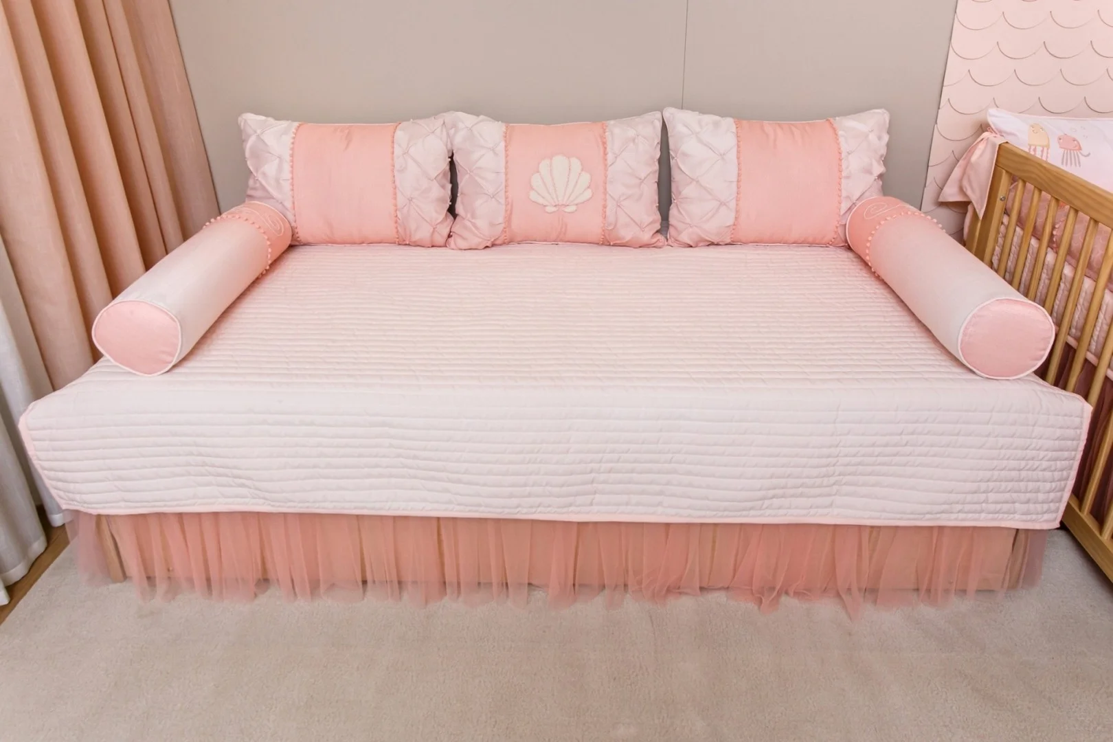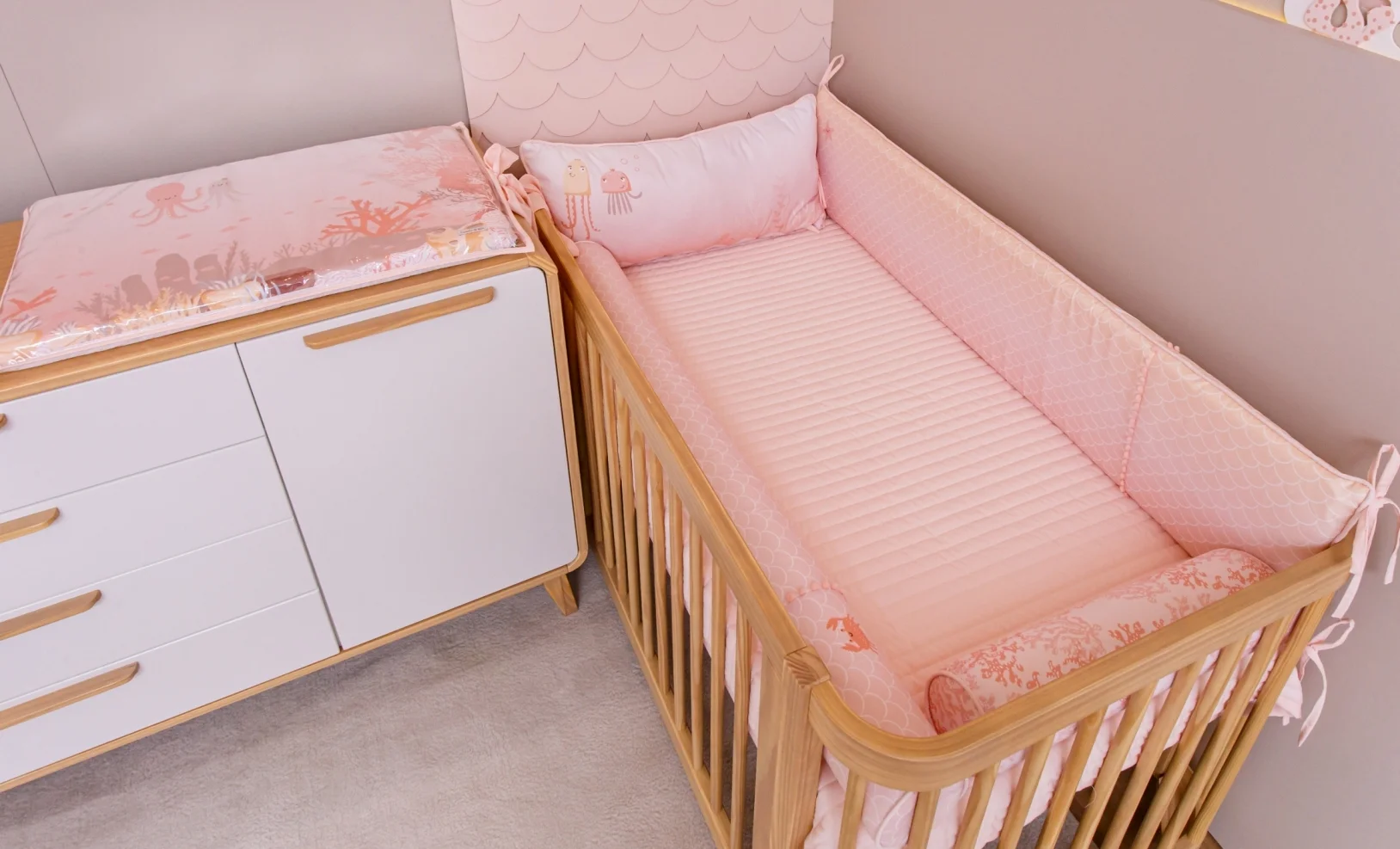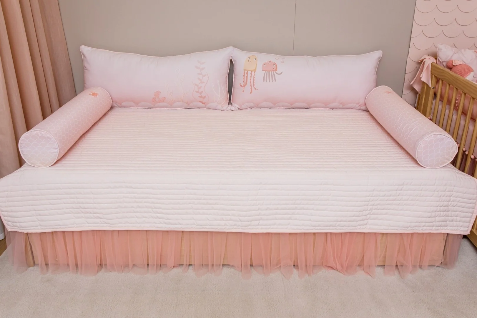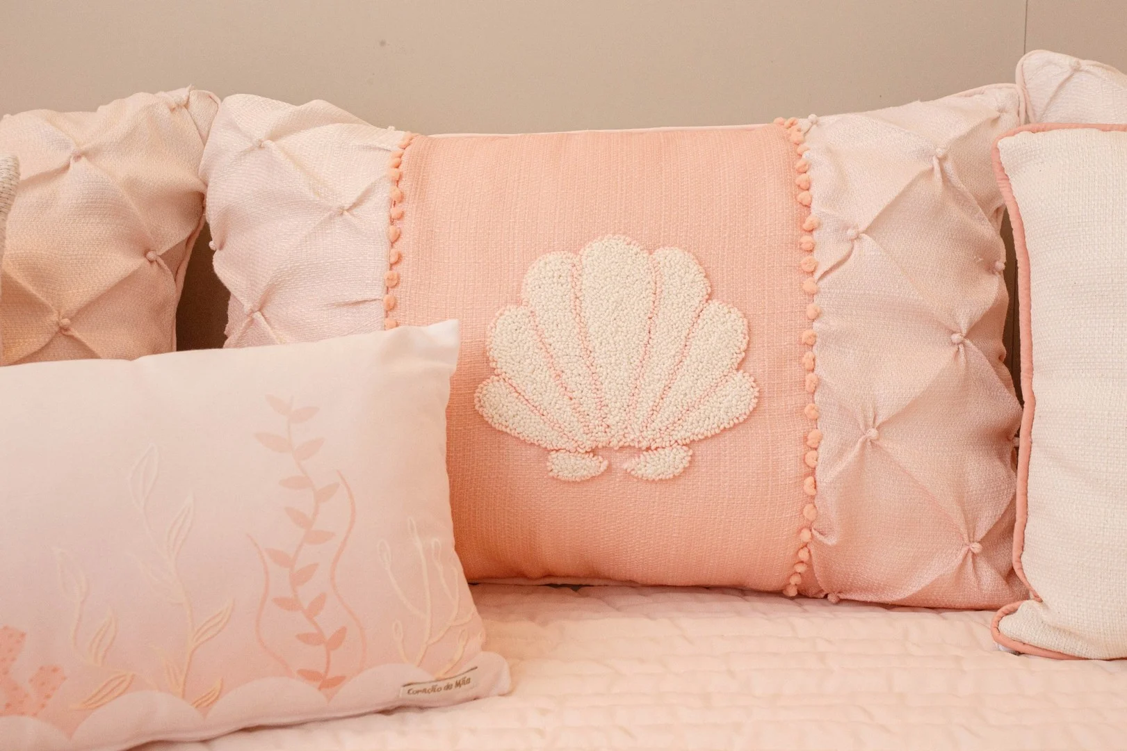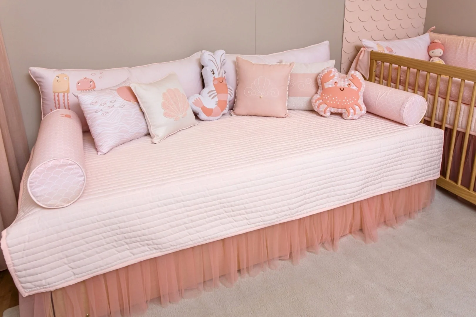 A Coleção Sereias apresenta produtos para enxoval e decoração do quarto do bebê. Inclui kits de berço, kits Montessorianos para cama ou mini cama, kits de cama, almofadas e almofadas de amamentação, cabanas, sacos de brinquedos, mantas de crochê e jogos de lençol. Na decoração, conta com painéis decorativos, quadros em MDF, quadros porta-maternidade, enfeites, porta-retratos, caixas decorativas, móbiles e réguas de altura. Todos os itens são confeccionados com materiais de alta qualidade, garantindo conforto e segurança para o bebê.