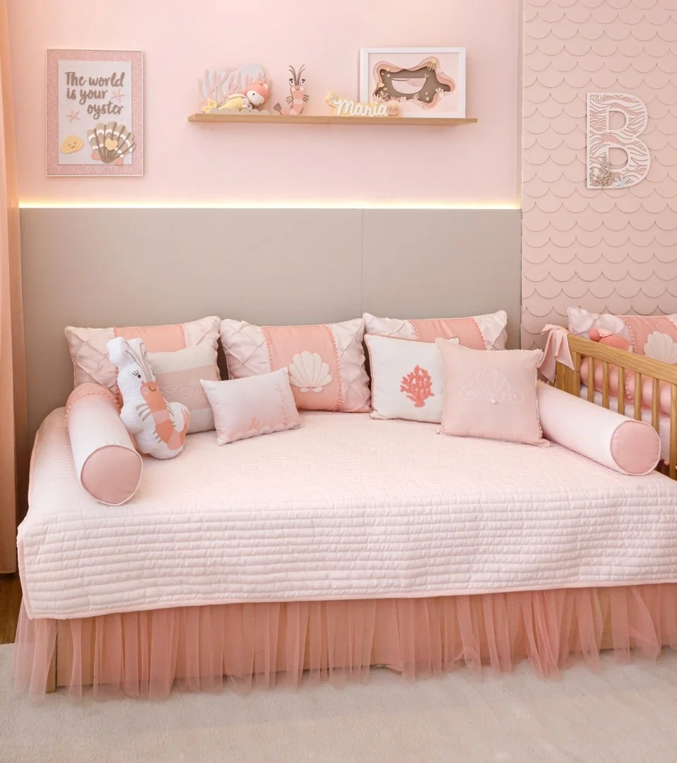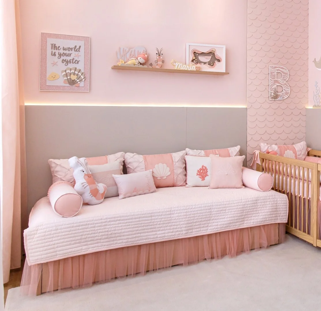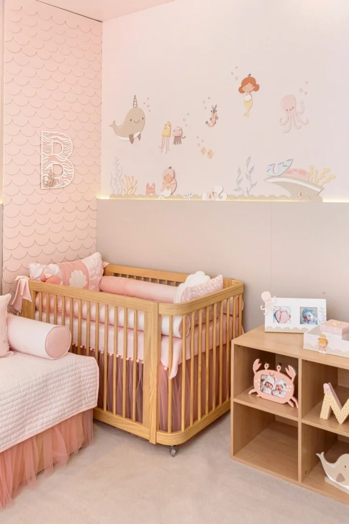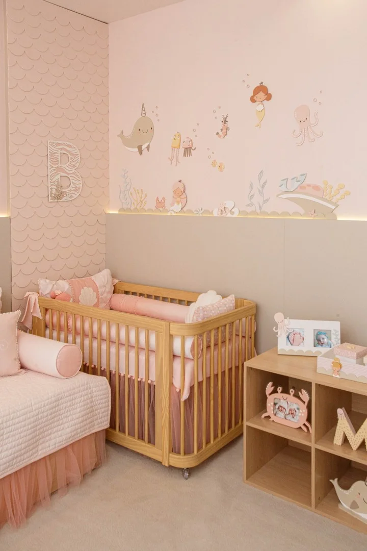 Mergulhe seu bebê no mundo encantado das sereias, criando um espaço mágico e cheio de aventuras marítimas.