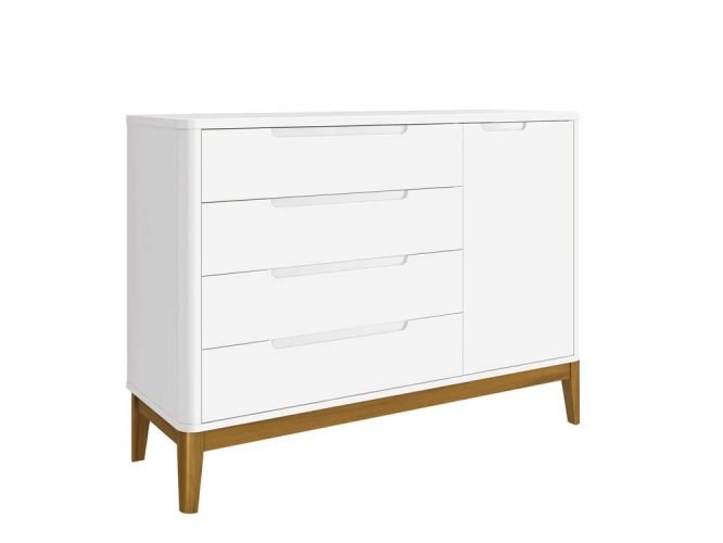 A Cômoda Sapateira Boom Classic 1P 4G em Branco Fosco é a escolha ideal para o quarto dos pequenos, unindo funcionalidade e segurança. Com estrutura 100% em MDF, ela apresenta puxadores embutidos e corrediças telescópicas, garantindo um uso prático e intuitivo. Seu design cuidadoso inclui dobradiças com sistema Slow Motion e cantos arredondados, proporcionando um ambiente seguro e acolhedor.