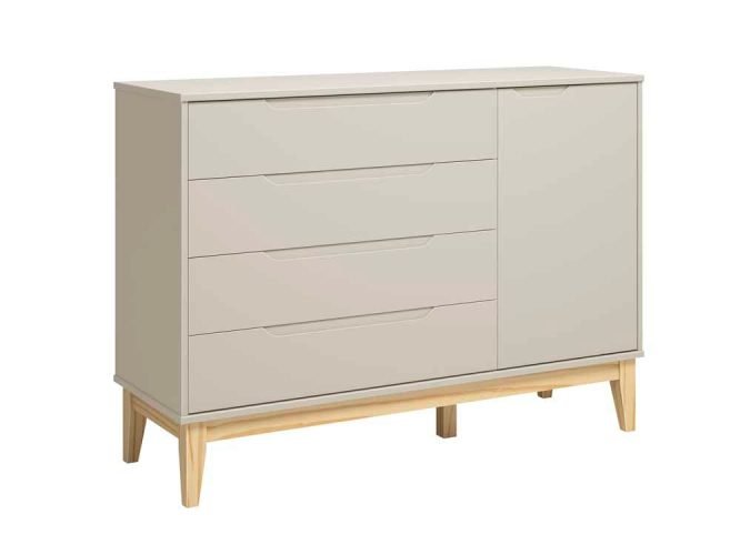 A Cômoda Sapateira Elfe Classic 1P4G Areia Fosco é a solução ideal para organizar o quarto dos pequenos com estilo e segurança. Confeccionada 100% em MDF, conta com puxadores embutidos e corrediças telescópicas que garantem um uso suave e prático. Seu sistema anti tombamento proporciona tranquilidade, enquanto a opção de pés em madeira tradicional ou natural permite personalizar a peça para harmonizar com a decoração do ambiente.