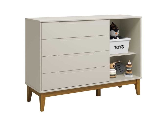 A Cômoda Sapateira Wood Classic Elfe une funcionalidade e segurança, ideal para o quarto infantil. Com 1,35 m de largura e 0,97 m de altura, oferece amplo espaço para organização, contando com puxadores embutidos e corrediças telescópicas que garantem um uso prático e suave. Seus pés em madeira Pinus e o sistema anti tombamento proporcionam estabilidade e segurança, tornando este móvel uma escolha perfeita para acompanhar o crescimento da sua criança com estilo e confiança.