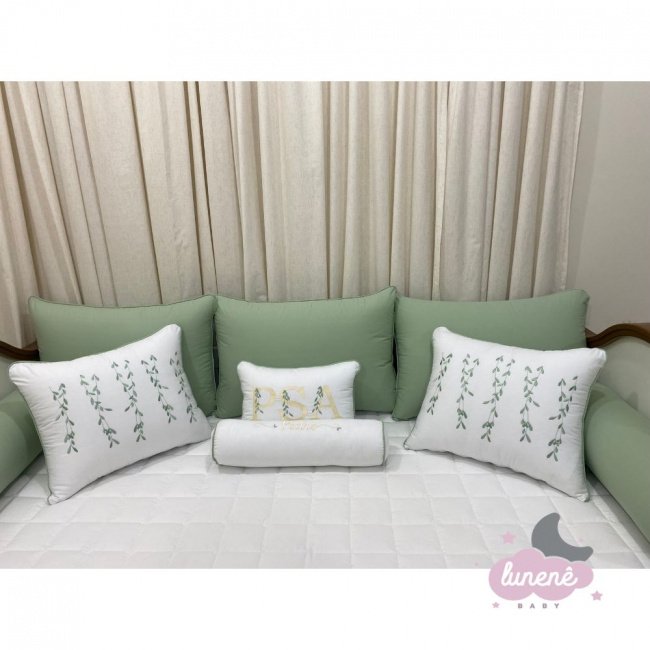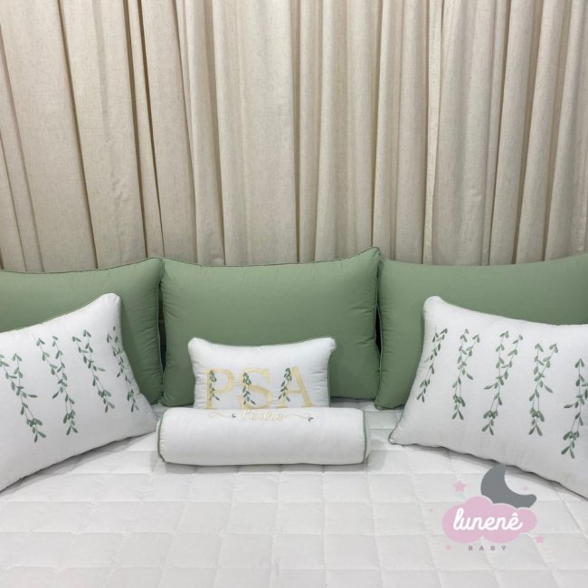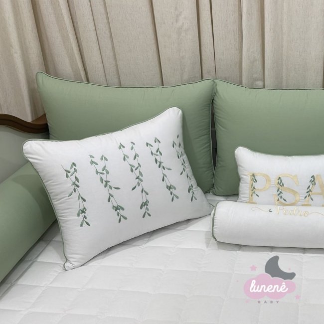 Enxoval de Cama Babá 10 Peças Branco e Verde Evolutivo